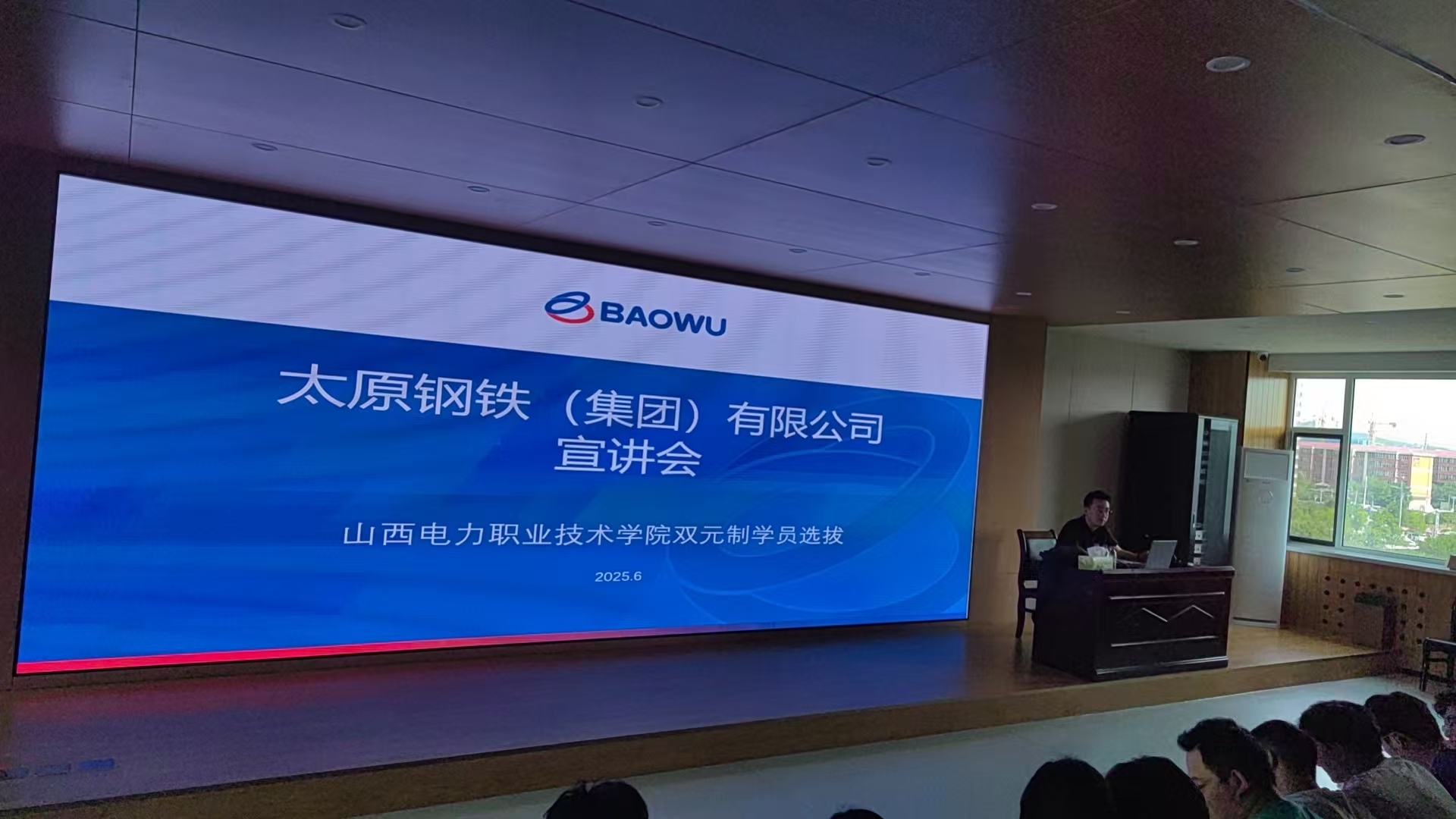 2025年6月13日上午9:30,博学楼五阶梯教室座无虚席,气氛热烈。继2024年双元制培养项目面试考核圆满落幕后,太原钢铁(集团)有限公司能源部再度走进我院,面向2023级发电厂及电力系统、供用电技术、电力系统继电保护技术及热能动力工程技术等专业学子,隆重举行2025年双元制人才联合培养招聘专场宣讲会。此次宣讲标志着校企双方在共育能源行业高素质技术技能人才的道路上迈出了更为坚实的一步。