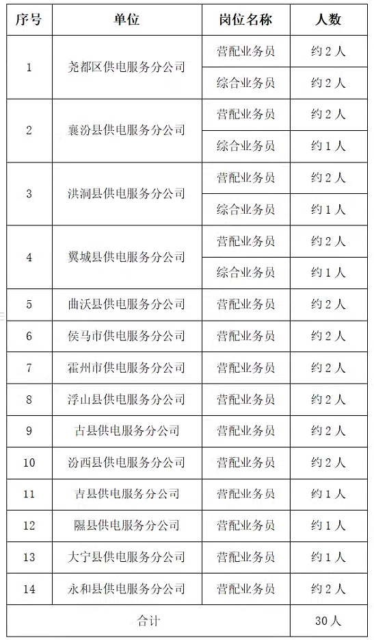 注:营配业务员主要从事乡镇及农村配电线路运行维护与检修工作,优先男性。